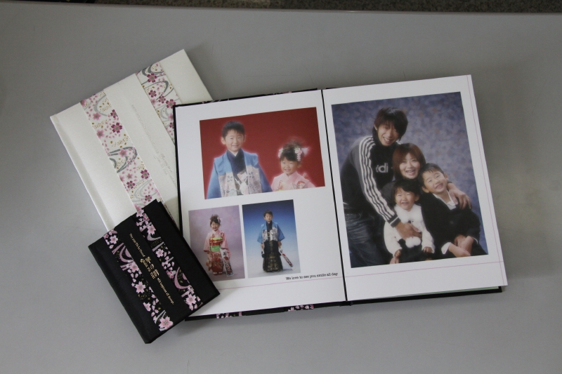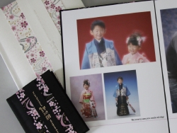 華1冊 税込 84,260円 写真が10カット以上もあるデザインアルバムです。白と黒の2色ご用意しています。かばんの中に入るミニチュア版もご用意。誕生日や撮影日が入ります。ご希望のメッセージも加えることもできます。撮影時間が長くなるため、必ずご予約をお願いします。 |