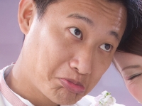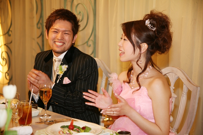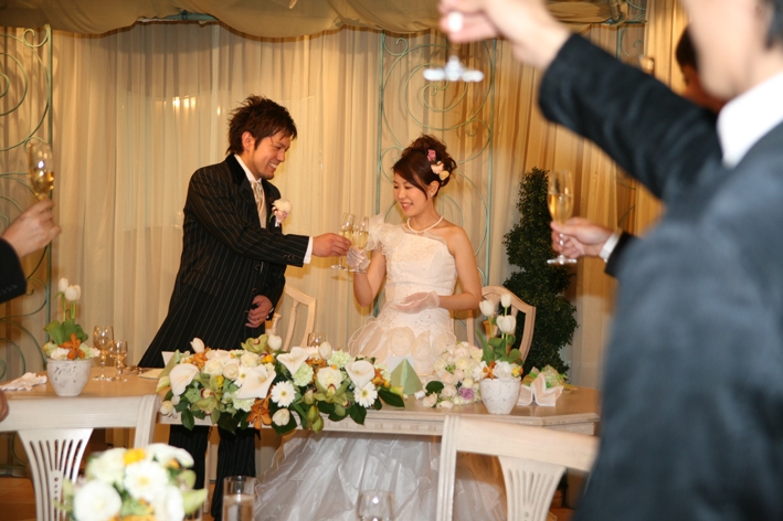 式も披露宴も写真撮影もほとんどの場合、新婦中心に決めたり進めたりしますよね。「衣裳は新婦に合わせるんだから」「写真はほとんどが新婦しか写らないんだから」なんて当日はらくちんに考えている新郎さん!!甘い甘い!!式、披露宴、写真撮影。すべてにおいて新婦さんをリードするのはあなた!「新郎」ですよ。結婚式で二人のシルエットを実に美しく感じられる場面がどんなにたくさんある事か・・。和服でもドレスでも歩くのは新郎が先です。契りの杯、指輪の交換も新郎が先です。ベールアップなんて新婦は待ってるだけ100%新郎主導です。新婦主導はケーキカットの後ケーキを食べさせてあげるくらいですかね〜?それくらい新郎がリードしないと絵にならない、逆に新婦がリードした日にゃ「どんな新婦やねんっ」てことになってしまいます。笑ってる新婦、泣いてる新婦、その横で無表情で座っている新郎を想像してみてください。だめでしょ〜そんな新婦を敏感に感じながらリードできる新郎は本当にかっこいいし素敵ですね。素敵な新郎は新婦の自慢になります。結婚生活にも影響あるかも・・・。