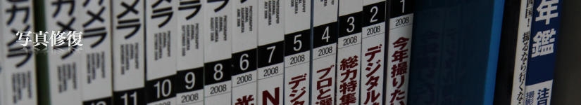 アナログ全盛の頃はネガに対しては「鉛筆」「修正刀」などで、プリントに対しては「修正筆」で修復していました。プリントに直接筆を入れるとその写真自体の褪色時間と筆で塗った色の褪色時間の差があり、結局修復した写真も数十年経つと、まだらになったりしていました。現在はプリント後、修正は加えませんので前述のようなタイムラグのある変色は怒りません。デジタル修正はデータに対して加工をします。実はデータに加工を加えると画質は劣化するんですよ。ご存知でしたか?以外でしょ!デジタルは後からいくらでも修正できる、とよく聞きます。アマチュアの写真教室の講師の口からもそんな事を聞く事があります。大間違いです!!解説すると長くなりますが一つだけ例を挙げますと、濃度調整や色調整、JPGデータに対して補正を加えると「ビット落ち」という現象が必ず現れます。結果どうなるかというと色の階調が飛んでしまって滑らかさが失ってしまいます。回数を重ねれば重ねるほど滑らかさは失います。しかし修復なので色調整等データに修正を加えなくてはいけません。きれいに仕上げるコツはできるだけ手を加える回数を少なくするという事です。ノウハウはそれぞれで蓄積するものです。画像処理にPCを導入して15年くらい経つでしょうか?35万画素の初めてのデジカメを100万円くらいで買ったのもその頃だったように記憶しています。デジタルの知識、経験も必要ですが20歳の頃学んだアナログ時代の知識もデジタルには役に立っています。